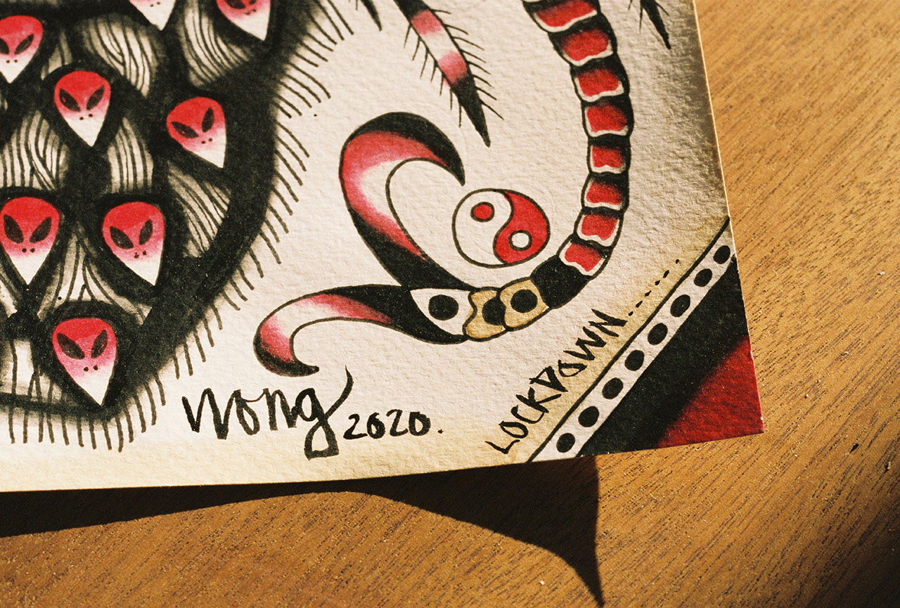 Durban born Jimmy Wong is a colorful guy who comes with healthy doses of quirk, charm and humor. From being a prominent figure in the local skateboarding, to multitalented artist, his work is definitely an extension of his personality. Cutting his teeth at drawing for most of his life, Wong has recently ventured into tattooing, doing his apprenticeship under Tyler Murphy at Sins Of Style in Cape Town.