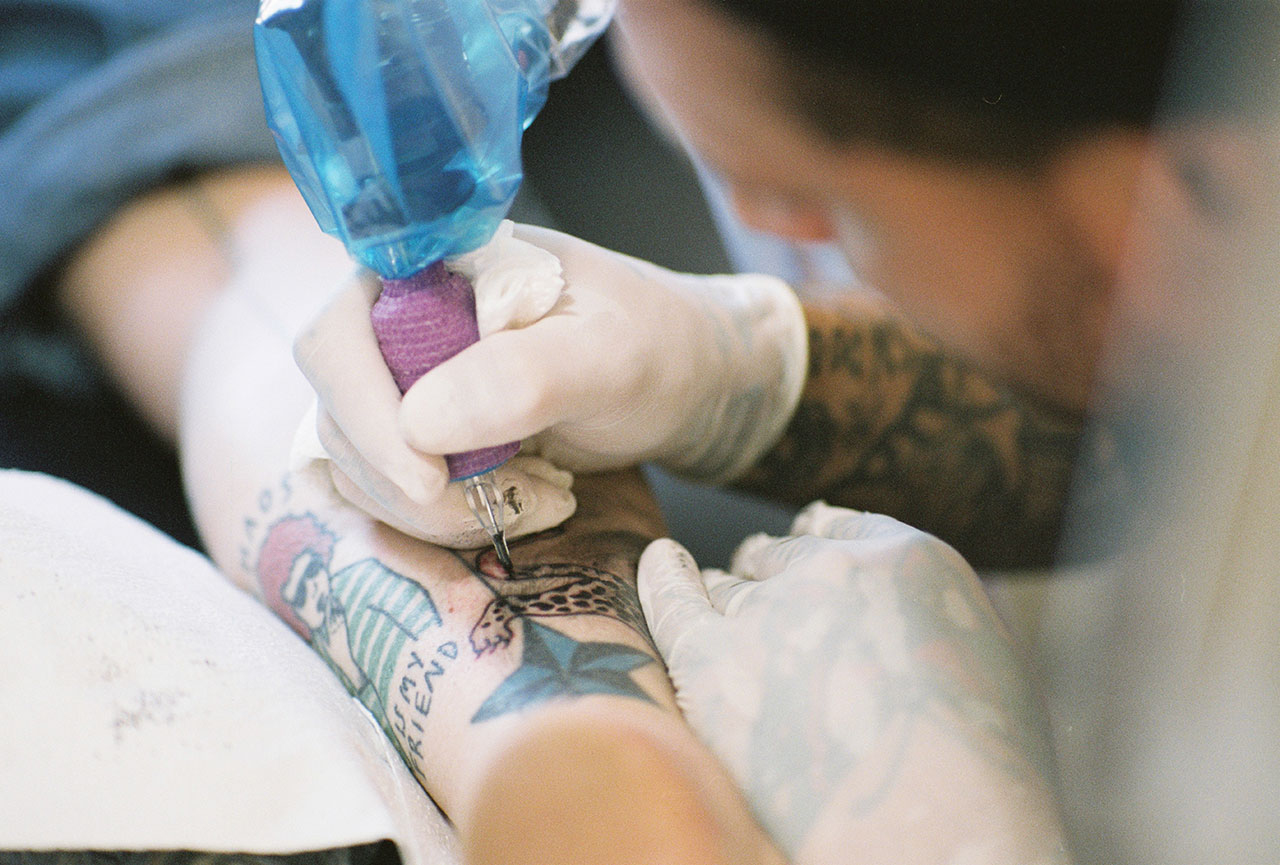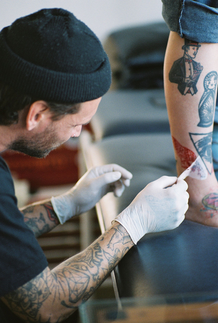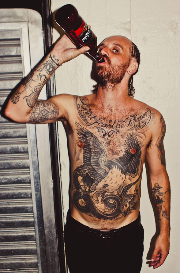 Yeah dude, I’m so fucking happy to be part of Sins. Fuck, I’ve been wanting to learn how to tattoo for a long time. Tattoo apprenticeships are hard and it doesn’t pay well. It’s a fucking mission. Three years ago I sold my moms car and got some money saved up. I started my tattoo apprenticeship and ended at a shop for almost two years where after I got fired for not taking it serious they said. I was heartbroken dude. Feeling like shit and not knowing what to do I jumped behind a bar, serving drinks, to make some bucks you know? Fuck, working in a bar is not good, especially for a guy like me who likes a drink or two. One night after a shift I was bitching to Tyler (Sins Of Style) about how depressed I was. Tyler spoke to me some more and eventually told me I should come to he’s shop the following week. Dude, I almost fucking cried. I thought he was fucking with me. It still feels