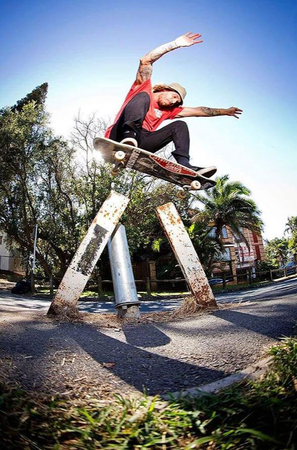 Dude, skateboarding is so gnarly these days. Guys are pushing so hard it’s mental. I didn’t really push that hard back in the day but I guess I had a little groove and flow going. I had fun. I always had a skateboard growing up and surrounded myself with skaters. My best friends are skaters. Skateboarding shaped me into the person I am today. For the past year and a half my knee stated giving me shit. The pain was unbearable and at the start of lockdown I underwent knee surgery. I’ve spent pretty much 2 months on the couch recovering. For now I ride my bicycle and go for dips in the ocean but that’s pretty much it. I’m definitely in no rush to get back on a skateboard.